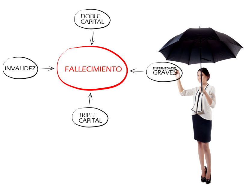 El capital contratado es la solución de la compañía para resolver todas estas dificultades en caso de fallecimiento por cualquier causa.